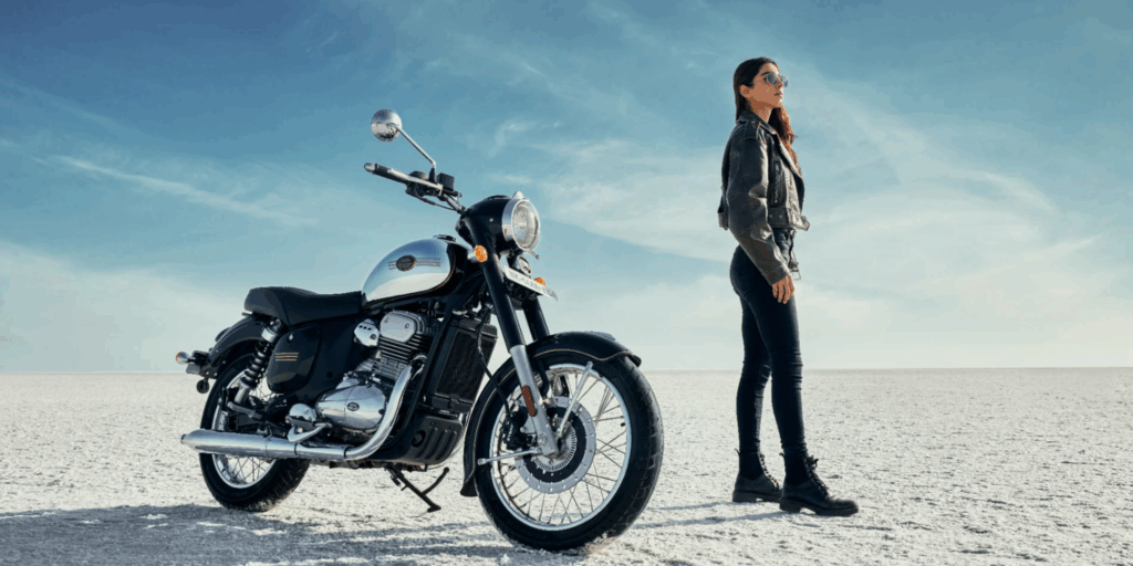 Das Design dieses Modells wurde von der Ära der berühmten "KYVACKA" inspiriert, dem Zweitakt-Motorrad JAWA 250, Typ 353 und JAWA 350, Typ 354, die beide seit den frühen 1950er Jahren bis zur ersten Hälfte der 1970er Jahre in Serie produziert wurden. In jeder Hinsicht ist es durch solche genetischen Elemente wie Kraftstofftank, Seitenkästen oder Instrumententafel belegt.